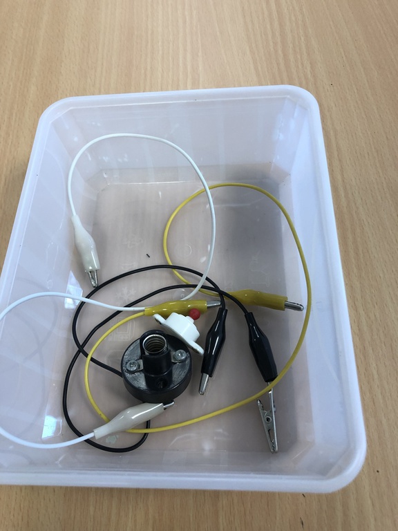 Ils nous ont distribué des piles, des fils électriques avec des pinces crocodiles, des ampoules, des interrupteurs, une hélice.